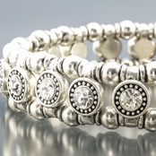 このブレスレットは、真鍮のあたたかさとラインストーンのきらめきを組み合わせた、