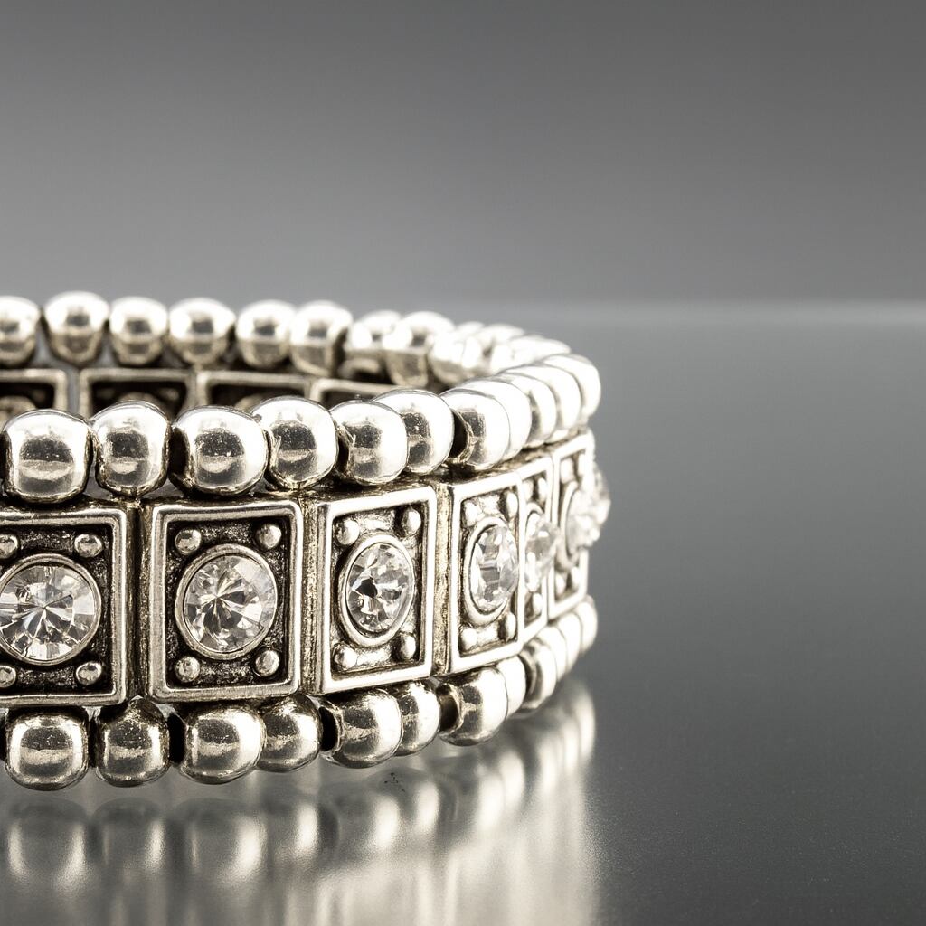 煌びやかで華やかな輝きを放つ、真鍮×ラインストーンのブレスレット。
